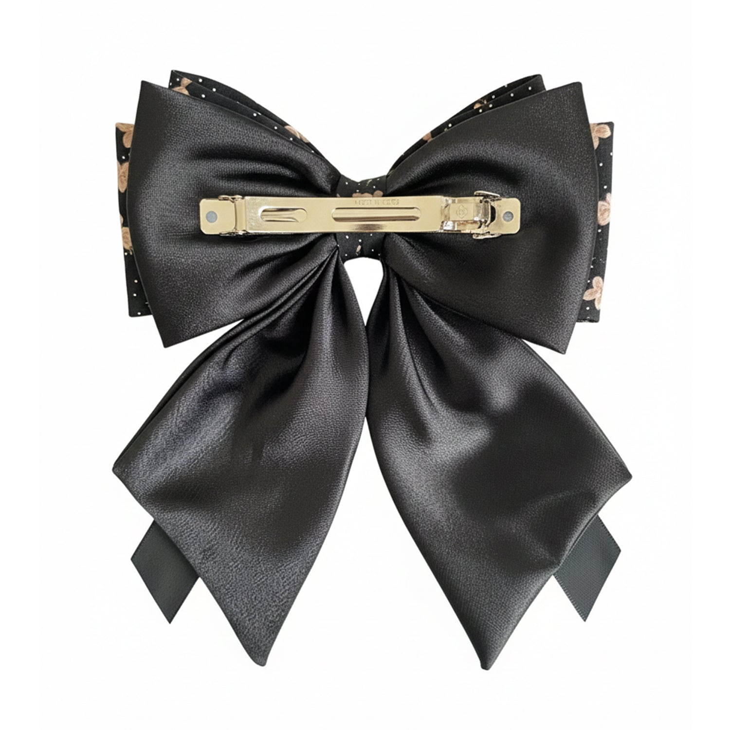 Floral Print Bow Clip with Satin Ribbons (Black)
