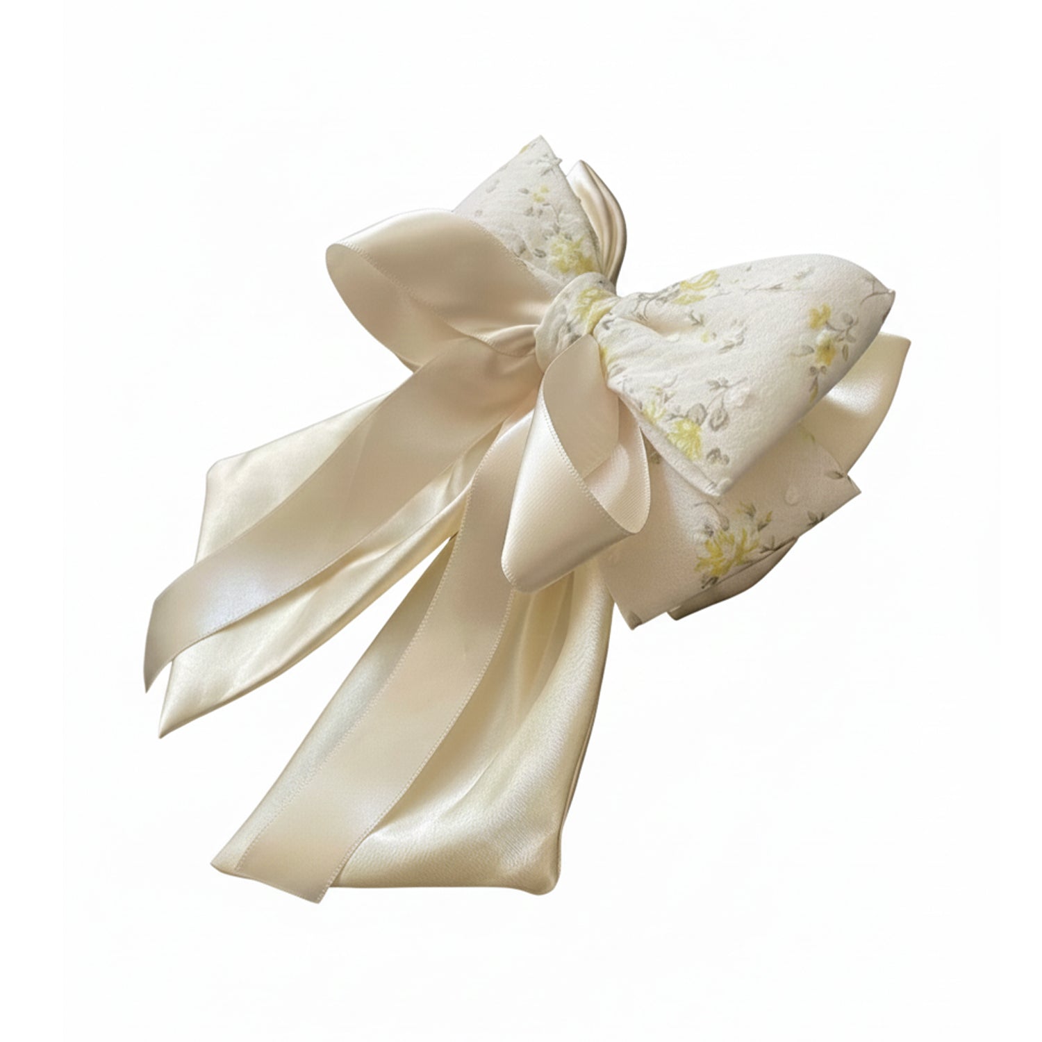 Floral Print Bow Clip with Satin Ribbons (Lemon)