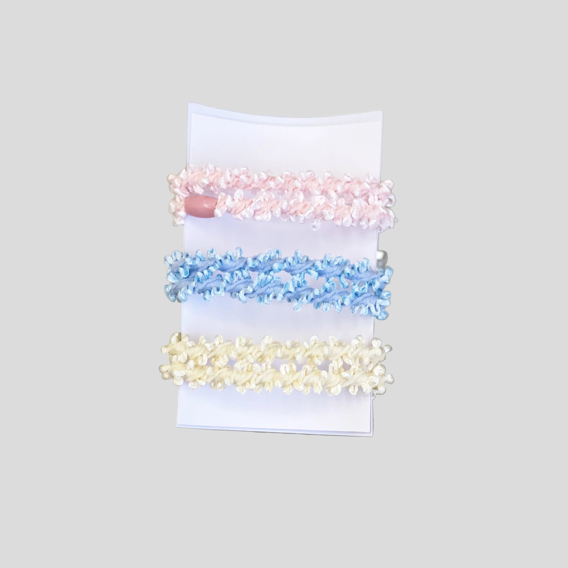 8 in stock Free shipping available for orders above ₹500! COD available for cart value above Rs 500/ Couldn't load pickup availability Our Soft Strong Hair Ties offer the perfect combination of gentle comfort and reliable hold. Made from soft materials, they grip your hair firmly without pulling or causing breakage. Ideal for all hair types, these ties keep your hairstyle secure throughout the day while maintaining softness that prevents damage. Experience strength and comfort in one simple accessory. Pack of 3 pairs. (Pink, Yellow and Blue)