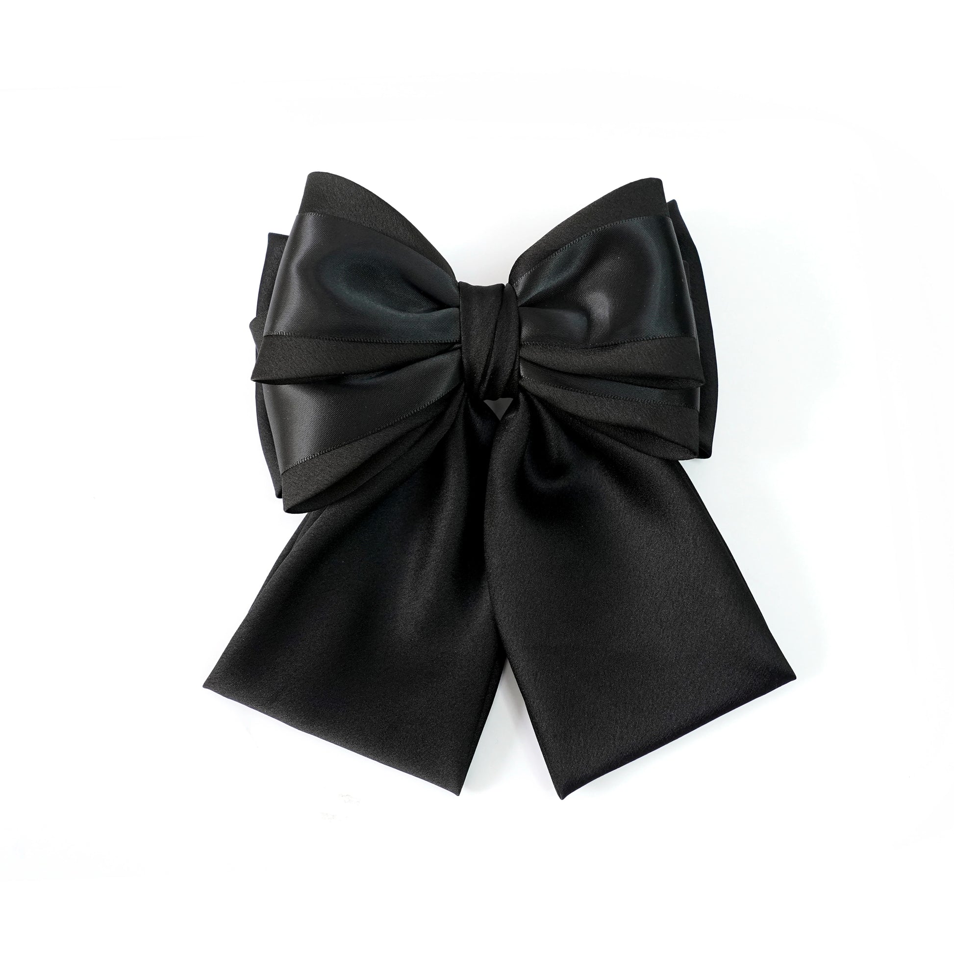 Soft Satin Bow Clip with Satin Ribbon (Black)